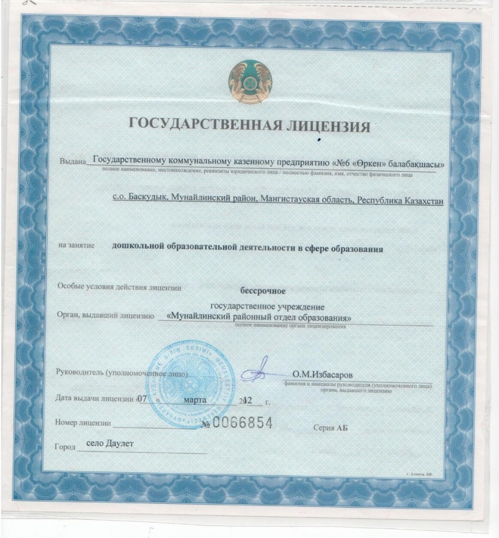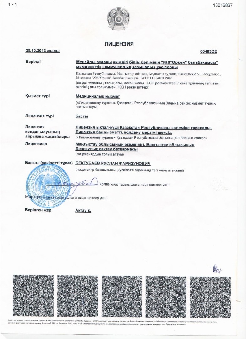 «№6 «Өркен» бөбекжайы» жедел басқару